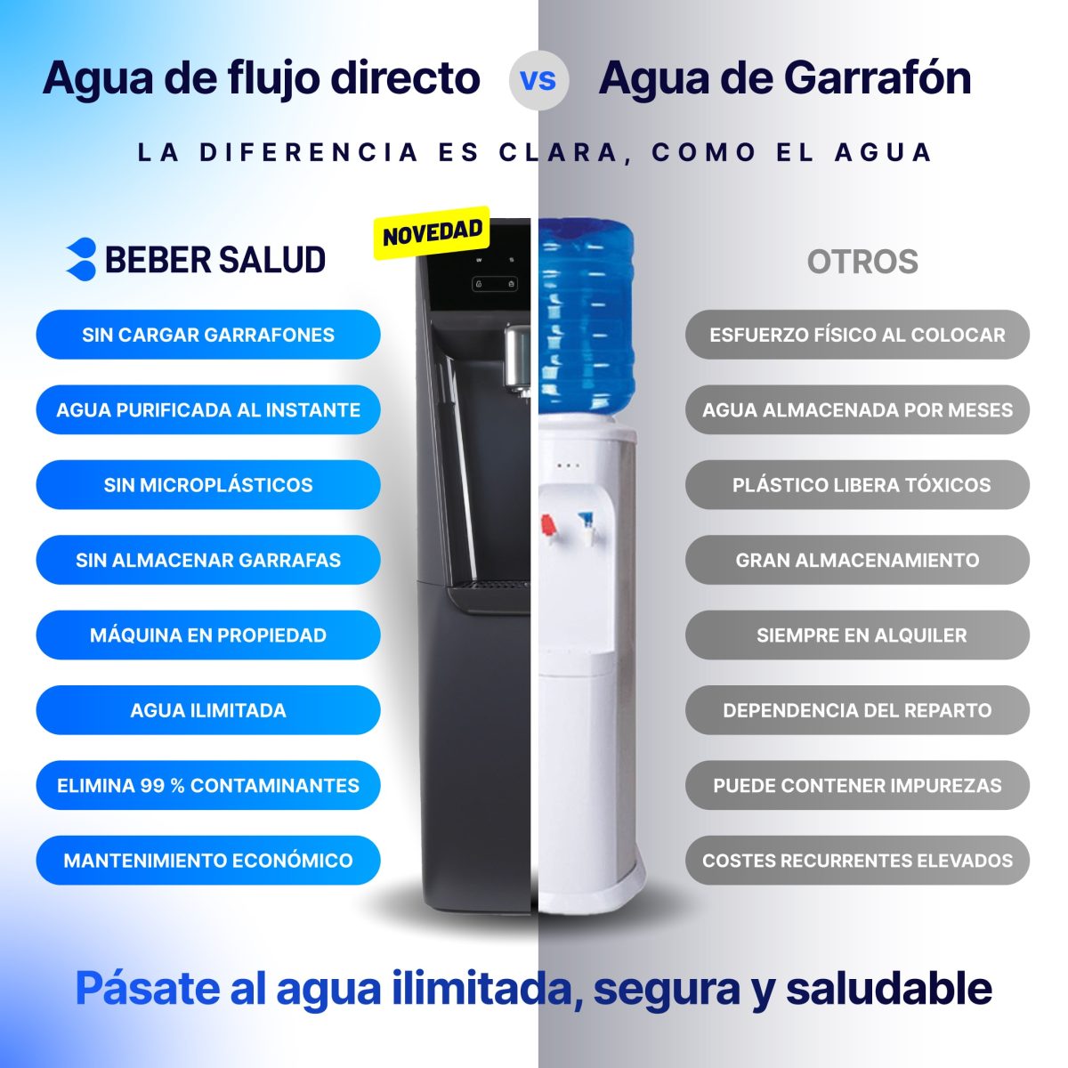 Olvídese de cargar y almacenar agua embotellada. Con el equipo más novedoso del mercado.